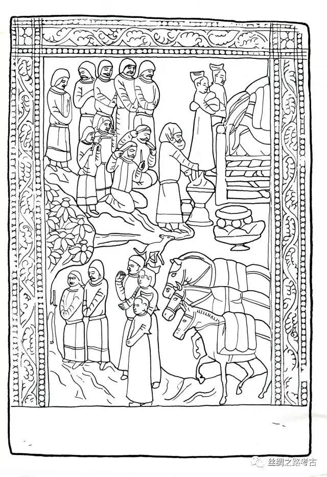 图35 河南安阳北齐石棺床上的粟特人形象(采自《中国圣火》,第186页)