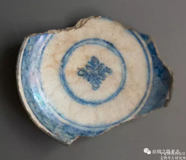 更有意思的是一件伊斯兰时期灰坑出土的一件青花瓷碗(图八)。青花瓷是我国元朝创烧的瓷器,其青花就是伊朗进口的钴料烧成的。这种瓷器在明清时代收到欧洲人的欢迎,大量出口到欧洲。伊朗曾经属于蒙古帝国的伊尔汗国,青花瓷也自然大行其道。不过, 伊朗人并不满足于从中国进口青花瓷,而是开始仿烧青花瓷,15世纪更为普遍。这次发现的青花瓷碗就是一件仿烧品,碗的造型和花纹都有意模仿中国产品,但是技术没有学到家,花纹简单而且模糊。在伊朗历史上,这不是第一次学习中国的陶瓷技术;在11和12世纪,伊朗人就从中国宋代的单色瓷瓷吸收灵感,烧出了光泽油亮的釉陶。