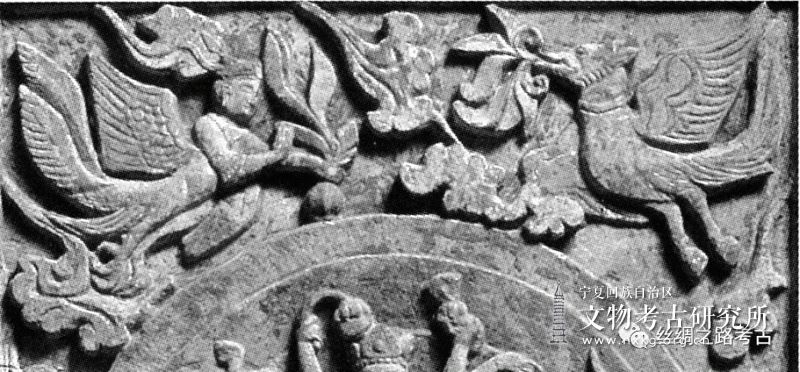 图8 吉美围屏石榻第2块屏风上部的紧那罗与森莫夫