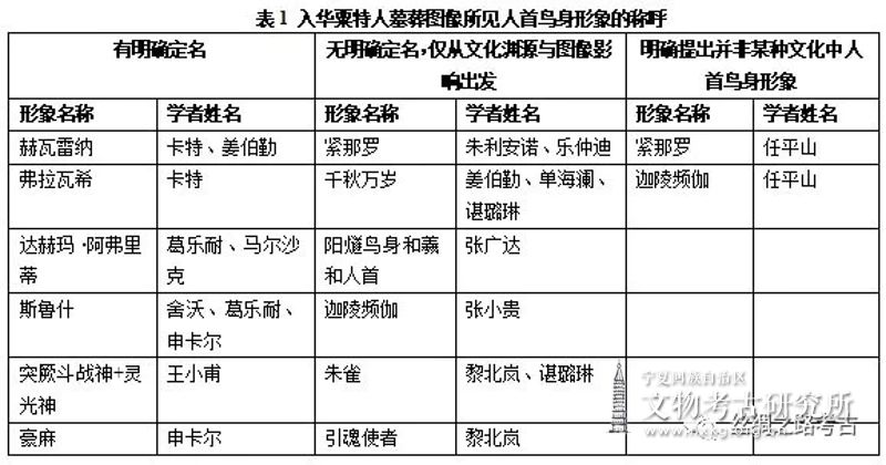综上所述,学者关于入华粟特人墓葬所见人首鸟身形象的研究进行得比较深入,但众说纷呈,值得进一步分析考辨,得出相对而言接近实际的观点。