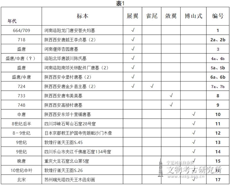 唐代毗沙门天王冠上的鸟形大致有四种不同样式,前后发展的线索比较清楚。我们做一个简单的梳理(插图5):