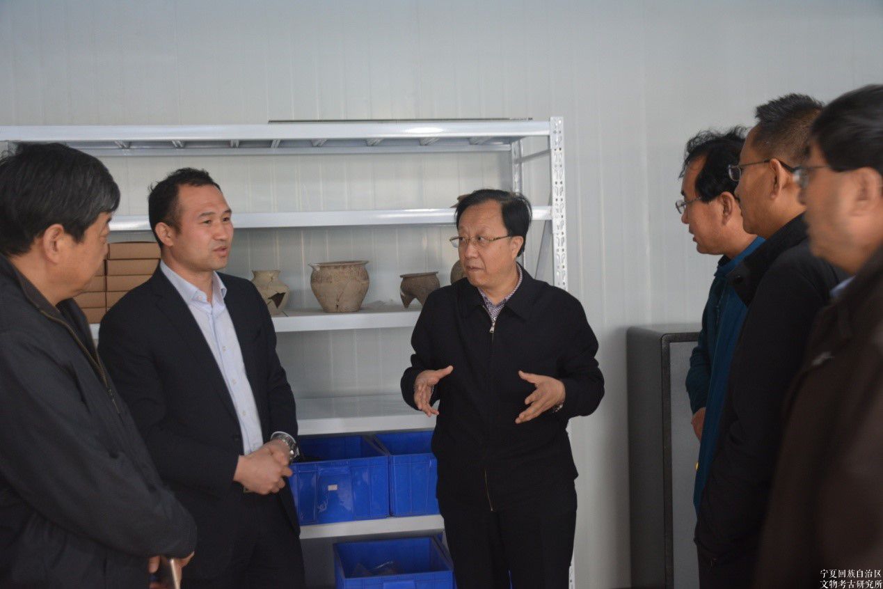 之后,宋厅长等来到考古工地文物库房,仔细察看了出土文物。他强调,考古工作是一项有价值有意义的工作,此次出土的文物弥足珍贵,有着丰厚的文化底蕴。姚河塬考古工作取得的成果,增添了全区人民的文化自信。要切实做好文物保护工作,保护好祖先留给我们的珍贵文化遗产。同时要进一步做好遗址的保护规划、文物的展示利用和科学研究工作,让埋在大地上的文物活起来。