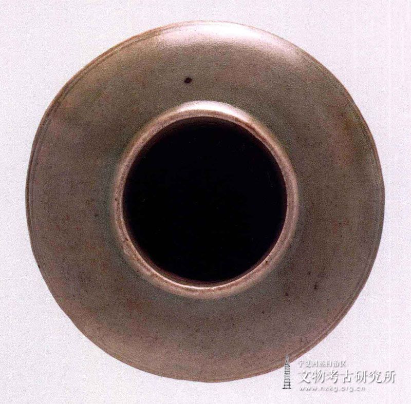 该瓷灯圆唇敛口,宽折沿,折腹,平底,足呈喇叭形,釉色丰厚。器底不施釉,露白胎。器内仅近口沿处施釉,轮制痕迹清晰。从器型、釉色、胎色上都具有龙泉窑青瓷的特点。