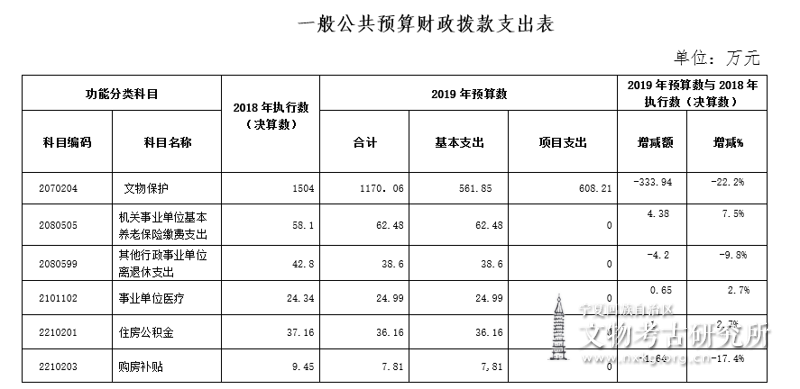 二、关于宁夏回族自治区文物考古研究所2019年一般公共预算财政拨款支出情况说明