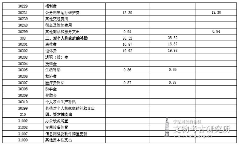 宁夏回族自治区文物考古研究所2019年部门预算——预算表