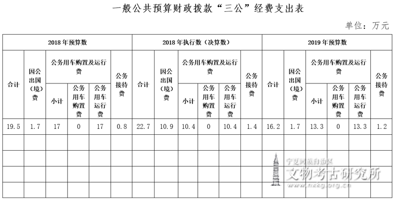三、关于宁夏回族自治区文物考古研究所2019年一般公共预算财政拨款“三公”经费预算情况说明