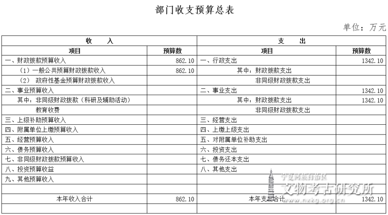 宁夏回族自治区文物考古研究所2019年部门预算