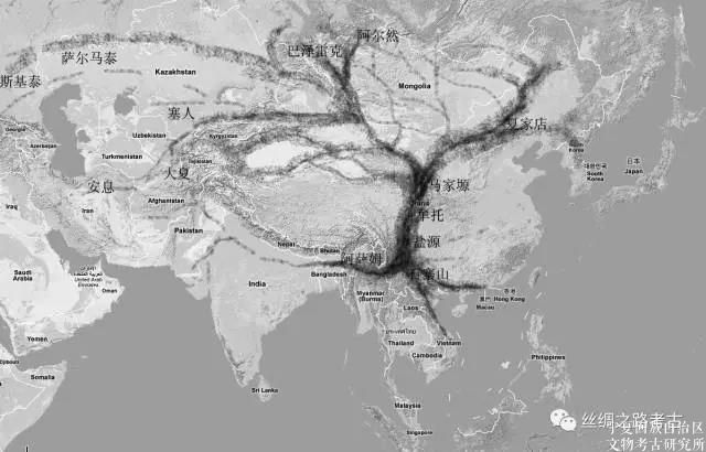 最后看西南方向,对“蜀-身毒道”的探索和研究是所有交流通道中最具有吸引力的,开展的田野调查和研究工作为数不少[116]。很多学者认为这条交通路线在战国至西汉就已经开通,并承当着重要的文化交流的作用[117]。考古材料证明,“西南夷”文化中有大量蜀的文化因素,蜀和云南的关系非常密切[118]。不过在这个时期,从云南到古代印度的交通联系是否存在,或者是达到什么程度,能用来证明的可靠的实例并不多。根据印度公元前4世纪末的文献记载,古代印度使用中国的丝绸。张骞在大夏也看到筇竹杖和蜀布,并了解到其相关来源的信息。石寨山文化中也的确有一些文物和古代印度有关系,比如蚀花肉红髓石珠[119]。但这些文物在新疆以及丝绸之路草原道上都能发现较早的例子。在张骞凿空、汉武帝开辟丝绸之路之前,四川和新疆地区,甚至中亚已经有了联系[120]。因此,现在判断东汉以前云南和古代印度地区的贸易的具体路线问题尚缺乏特别多考古方面的证据。大部份作为证据的考古材料,其传播的路线,从南亚次大陆可能,从北方地带通过藏彝走廊、或者通过中原地区也未尝不可。《华阳国志·南中志》称哀牢夷之地“绝域荒外,山川阻深,生民以来,未尝通中国也”。横断山脉的高山和河流、以及亚热带、热带雨林对人类交通的阻碍作用是非常巨大的。滇缅道的通畅,单单从技术条件看,如果要披荆斩棘、负重翻越山地,驮运货物的矮种马和开山劈路的铁刃器是非常需要的。正如学者指出的“滇缅段整体都十分通畅可能是在东汉永平年间永昌郡设置以后之事” [121]。东汉明帝永平十二年(公元69年),汉王朝置永昌郡(治今云南保山)后,可以说是一个转折。汉武帝曾想打通的“蜀-身毒道”在此之前的作用尚不特别显著和明确,具体的情况值得进一步的研究。《史记·大宛列传》记载“然闻其(昆明)其西可千余里有乘象国,名曰滇越,而蜀贾奸出物者或至焉,于是汉以求大夏道始通滇国”。滇越是西通印度的重要一站,因此,滇越的考古发现值得期待。关于滇越,有学者认为在今云南省腾冲、德宏一带[122]。有的认为是今印度东部的阿萨姆邦[123]。还有学者认为在阿萨姆邦和缅甸之间[124]。从文献所记的里数看,保山、腾冲、德宏地区不太可能是滇越。不过,保山、腾冲是这条交通线上的必经之地,无论如何,中国国境之内的保山、腾冲地区都值得开展考古工作。如果缅甸北部和印度阿萨姆邦有大量针对性的考古发现,那么这些问题将会得到进一步的解决。总之,西南丝绸之路滇印段迄今仍然存在大量的疑点,主要的原因是相关的考古证据还非常缺乏。不单是中国国内的,沿线国家的考古发现也比较少。同时西南地区发现的域外或者是域外式样的器物,通过北线的丝绸之路以及东南方向的海上丝绸之路,都可以传入。在这种情况下,判断中国发现来自印度方向西南丝绸之路的器物无疑具有很大的难度。所以,西南丝绸之路的深入研究还任重道远,需要将来突破性的发现来推进这个领域的研究。