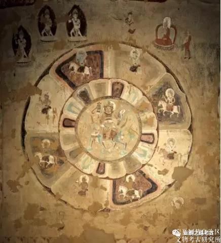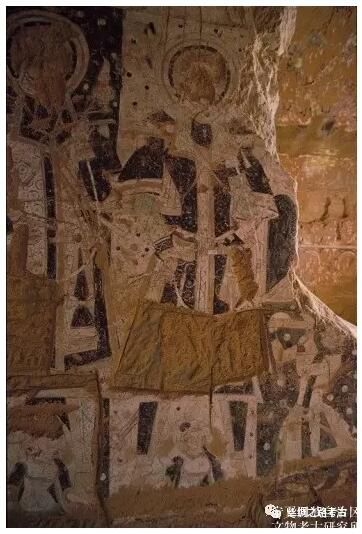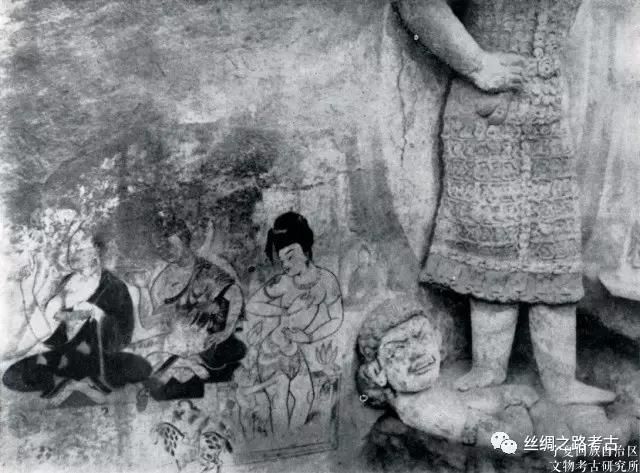 我們還注意到斯坦因在丹丹烏里克2號遺址(編號D.II)東牆壁面上發現的騎行人物位於壁面的最下部靠近地面的位置,丹丹烏里克遺址編號CD4:02(東墻6)的殘塊與托普魯克墩2號佛寺遺址發現的殘塊,成行的騎馬人物圖像均位於千佛的下方,原來的位置則在洞窟迴廊的下部。敦煌早期的北朝石窟中,在主室壁面及中心柱下部流行繪製夜叉的題材,這些夜叉一般裸身僅著短褲,身材矮小粗壯,豐滿健碩,或人頭或獸頭,面相或憨厚或兇惡或老醜,或作托舉狀,或舞蹈或奏樂,姿態各不相同。和田出土繪畫品中的騎馬人物位於壁面下部,與敦煌早期石窟中將夜叉之類護法神的題材置於洞窟壁面下部也許有一定的承襲關係。