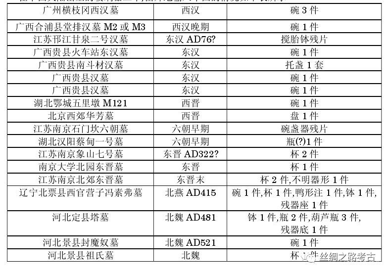 在中国大陆出土的玻璃器皿中,由外地输入中国的情况如下表所示: