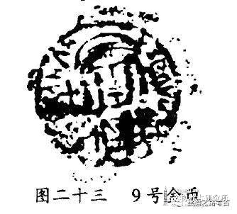 9號金幣(图二十三),這枚金幣被F·蒂埃里確定為莫里斯(公元582~602年)的仿製品84。筆者沒有機會目驗原幣,不過從已發表的拓片來看,幣面上的銘文似尚清晰85,完整的銘文應該是DNMAVRCTIBPPAVG86,背面銘文F.蒂埃里釋為ΛHΛHDΛVU。真幣背面似乎也無類似銘文。