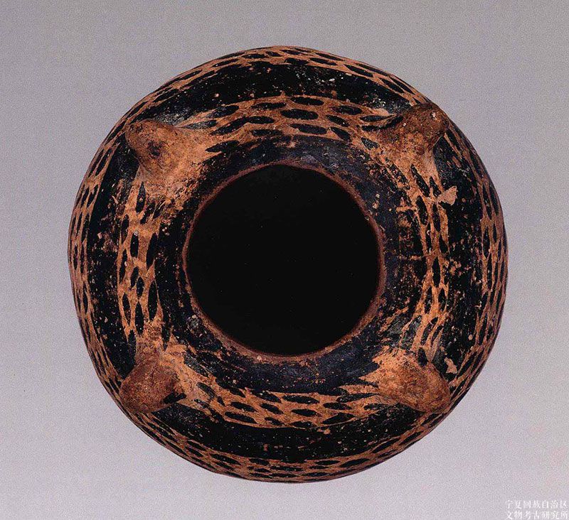 新石器时代由于简陋的物质条件和席地而居的生活习性,远古人在制作彩陶器时,往往将彩绘施于器身上半部。象这件通体彩绘的陶器,实属难得。