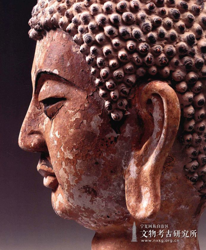 塑像月牙形眉毛,深目,与额头连成直线的高鼻,使佛头像面部表情显得平稳沉静;半闭双眼,流露出深思内省的神态。丰腮、下巴圆润、眉如弯月、嘴唇短厚、圆而近方的脸型特征,以当时人们公认的典型面相标准而塑造富有唐代造像遗风。