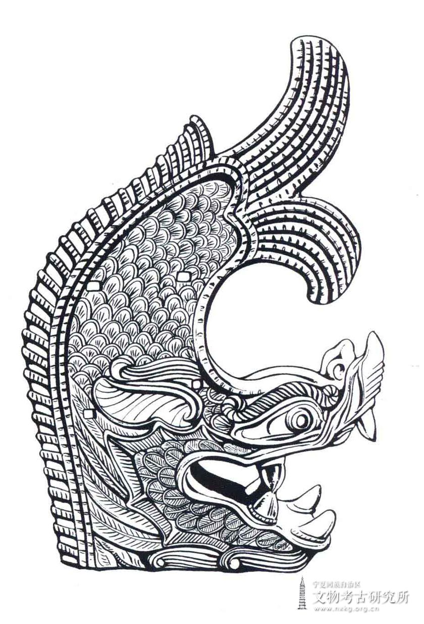 西夏建筑构件中的鸱吻、套兽及迦陵频伽、摩羯、海兽等各种动物脊饰,质地分为琉璃、红陶、灰陶等,制法均采用分模拼接的方法,模具的雕刻线条刻划或精细,或简洁粗犷,形象气势威猛生动,是西夏建筑构件中匠心独运的重彩之笔,反映了西夏建筑特有的民族风格。