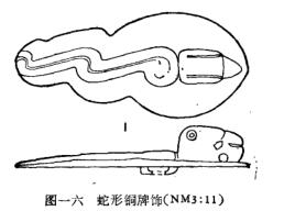 Ⅱ式:3件(NMZ:9:1一3)。一端兽头形,另一端半圆形。腹部中间有一圆形穿孔,侧面有两长圆形穿孔。长皆13厘米(图一八,;l图版拾柒,4)。