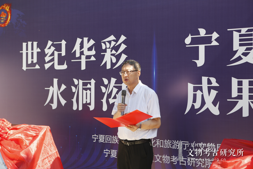 2023年8月7日上午,由自治区文化和旅游厅(文物局)主办、宁夏文物考古研究所承办的“世纪华彩水洞沟”暨“宁夏考古成果展”在承天寺塔大院开展。揭牌仪式由党支部书记高云峰主持,自治区文化和旅游厅党组成员、副厅长张玉进,文物保护与考古处处长张玉出席揭牌仪式。